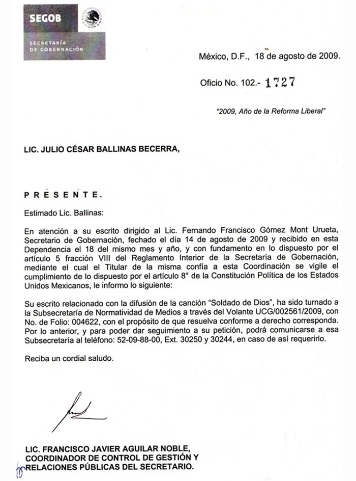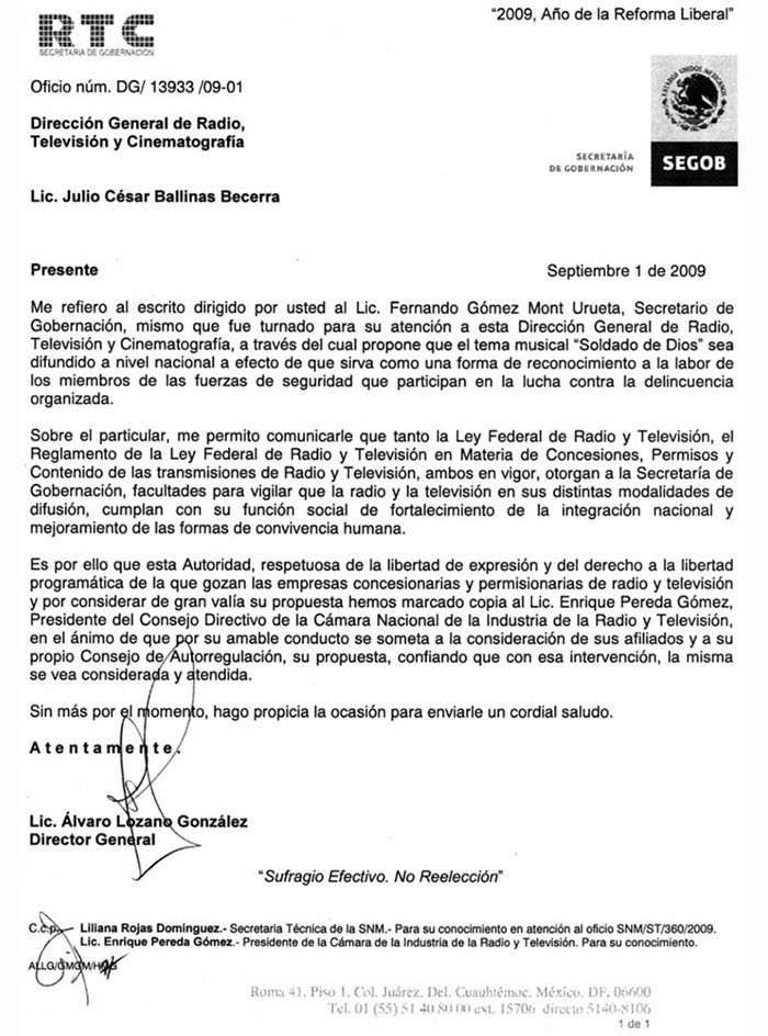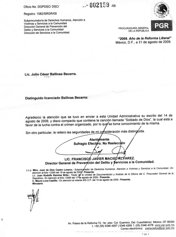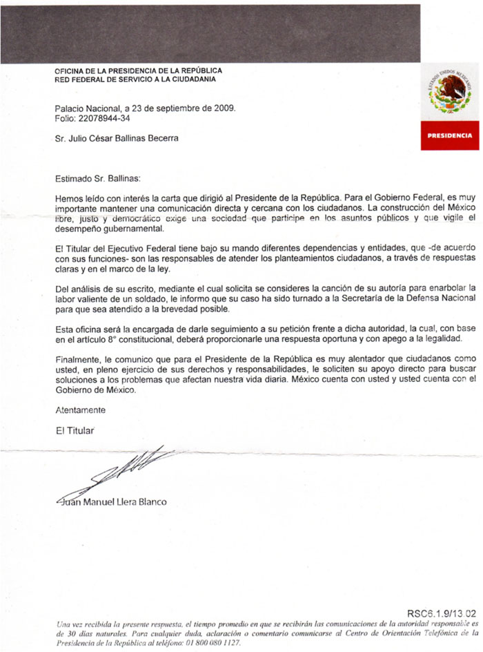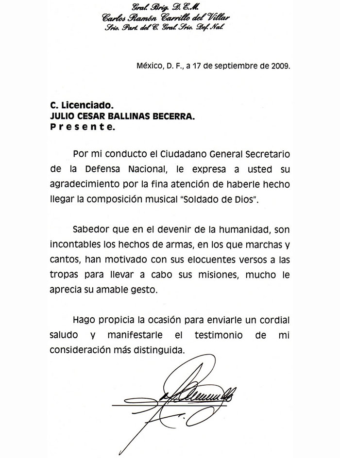 Transcripción de cartas de agradecimiento y apoyo institucional a la canción.
